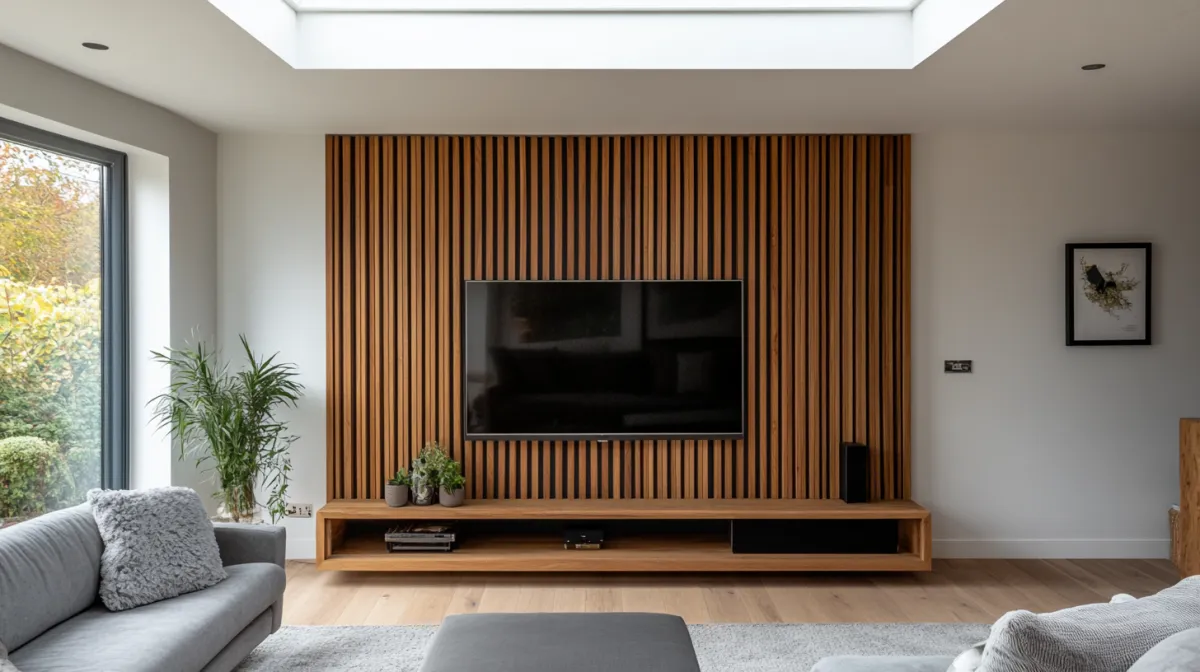 Alliez esthétique et technologie avec un mur d’accent qui sublime votre espace. Bois, panneaux acoustiques, lattes… Votre TV s’intègre parfaitement pour une ambiance chaleureuse et raffinée.